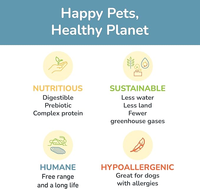 - HEALTHY TREATS FOR DOGS WITH ALLERGIES - Insect protein is a complete protein that delivers important nutrients your dog needs. It’s also a hypoallergenic, alternative protein hasn’t been overused – great for dogs with food sensitivities.hat is easy to digest & contains lauric acid, which is important for aging dogs