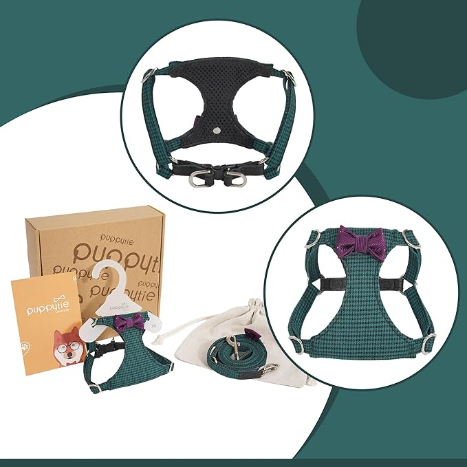Puppytie No Pull xs Dog Harness with Multifunction Dog Leash,Soft Adjustable No Choke Escape Proof Pet Harness Vest,Glossy Dark Green,XXS