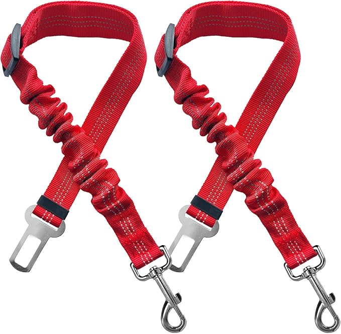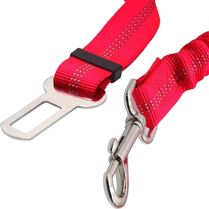 - 【Overview】 Adjustable dog car harness, bungee rope inside, buffer the shock from suddenly braking, keeps pets(dogs/cats) safetly in car, avoid driving distraction, they are very useful when taking the dogs / cats out for trip/travle, keep the dogs/cats in position to avid them jumping around in car when you are driving, keep them safe from suddenly shock like sudden braking, very useful seatbelt for dogs and cats.
