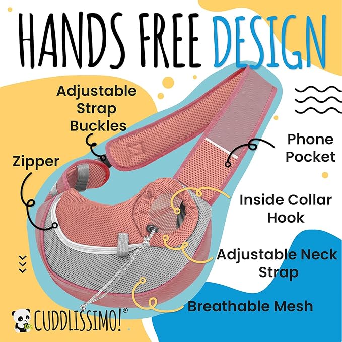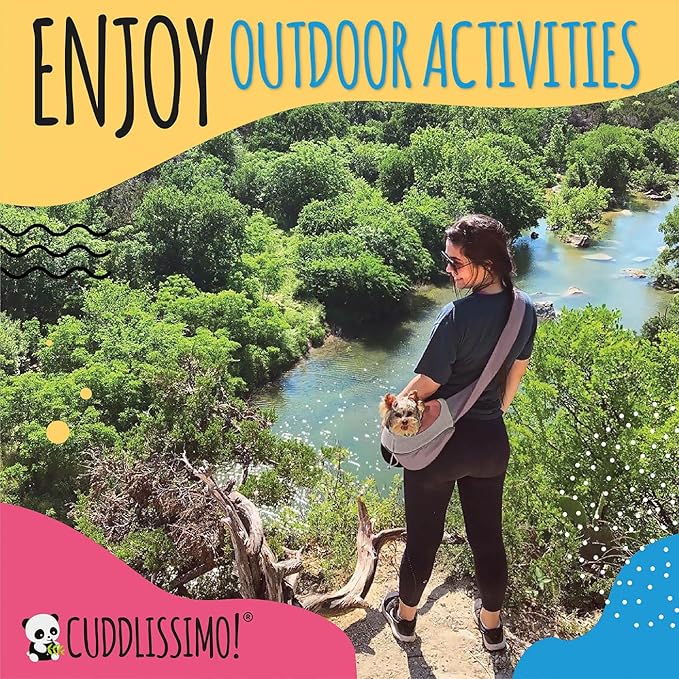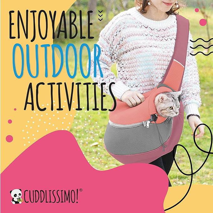 - š¶ PERFECT FOR MEDIUM PETS - Cuddlissimo! pet sling carrier is designed for medium sized dogs or cats, up to 12 pounds in weight. This dog sling has a padded bottom, and the neck opening is fully adjustable.