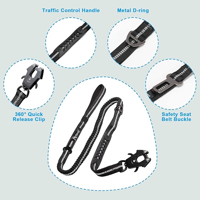 - MULTIFUNCTIONAL LEASH—:2 different handles are designed on this large dog bungee leash. The Padded Easy Walking Handle is more suitable for your daily dog walking. The Traffic Control Handle is more suitable for training your dog to prevent pulling or encountering special situations (such as cars approaching, crossing sidewalk...)