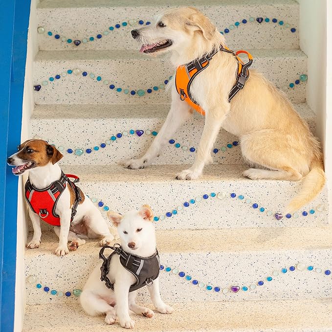 - 【Sturdy handle & Reflective Straps】 Our dog vest harness with a sturdy handle is on the back for easy to grabbing the dog when you talk to your friend or there are some accidents and assist dogs into the car. Amazing reflective design around this easy control dog harness and keep visible during night-time walks and add the safety.