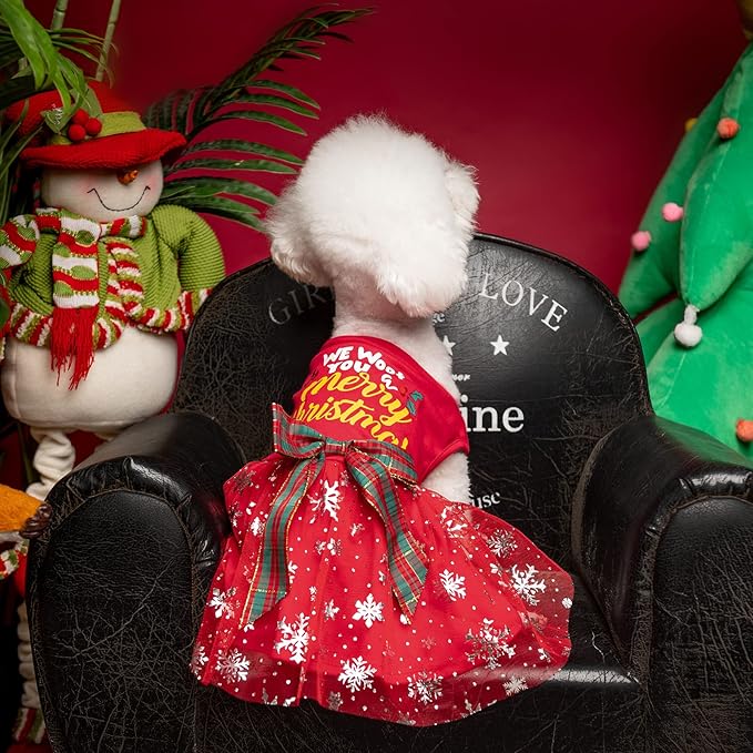 PUPTECK Dog Christmas Dress Outfit Puppy Costume Cute Small Dogs Clothes with Bowknot Skirt Pajamas