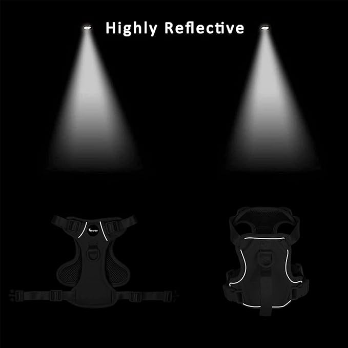 - [ Two Metal Clips ] No pull dog harness has two different D-rings to attach the leash. Attach to the chest D-ring to stop pulling, and use the back D-ring for more relaxed walks. And soft handle on the back adds more control on walks. Reflective straps makes both of you safer in the dark.