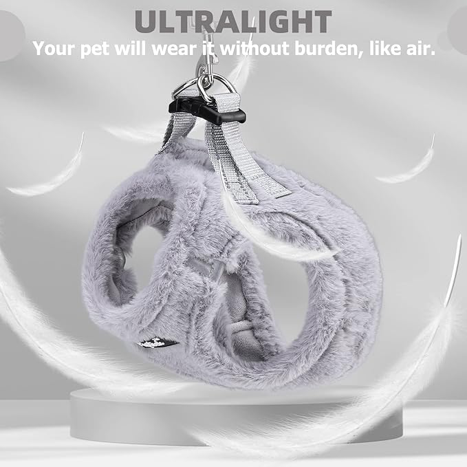 - WARM: The harness is made of thicker plush, which is not only very soft, but also keeps the dog warm to a certain extent. It is suitable for walking and playing outdoors in autumn and winter.