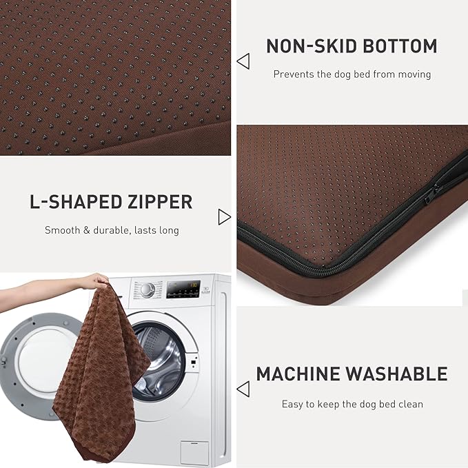 - Non-skid & Anti-scratch - The waterproof dog bed is built with water-resistant Oxford fabric on the bottom and sides, which is durable enough to hold up to daily wear and tear. The plastic dots on the bottom help prevent the dog bed from moving when our pet steps on or off, offering our little friend a strong sense of security.