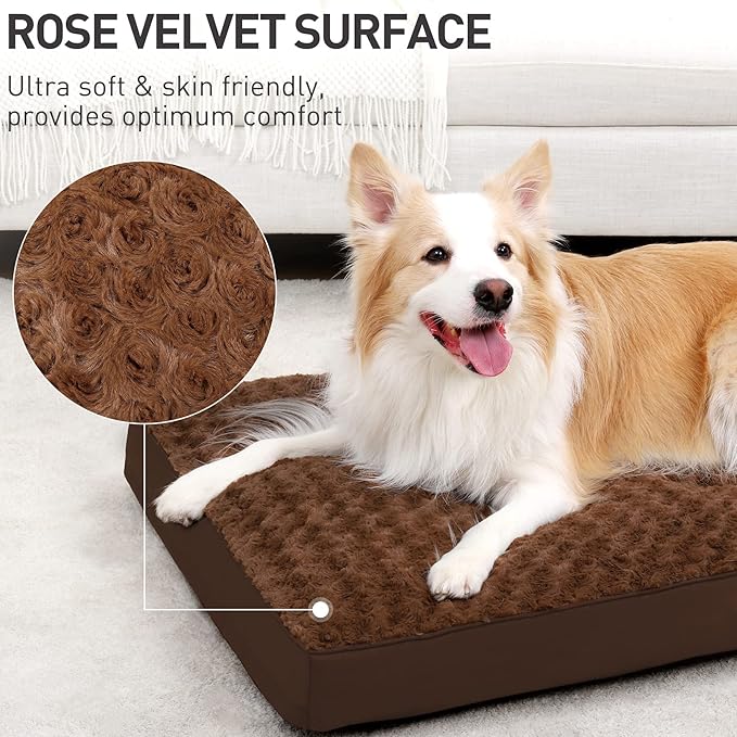 - Ultra-soft & Waterproof - The sleeping area of the dog crate bed is made of 3-layer fabric. The outer rose velvet surface is soft and skin-friendly. The middle TPU waterproof layer prevents liquid from penetrating, so that the filling won't get wet. The inner knit fabric lining is durable enough for long time use.
