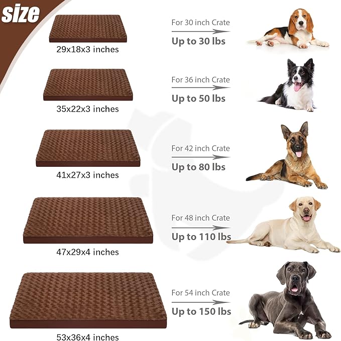 - Size & Using Occasions - This dog mattress measures 35"L x 22"W x 3"H, for dogs up to 65lbs. It can be used as a crate bed, dog pillow, kennel bed, cage bed, crate pad at home, even as a dog travel bed in a car or truck. It arrives as a vacuum-packed bed in a box, so pat it or let it inflate for about 24 hours before using.