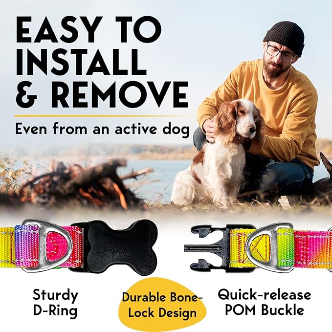 - Designed to Prioritize Your Pet's Comfort: Featuring chrome-plated links equipped with soft silicone caps, our anti-barking, anti-pulling collar stays in place as your dog moves. The smooth, rounded links won't dig into a canine's skin—eliminating the risk of possible irritation. Built with a quick-release POM buckle snap clip, you'll have no trouble putting on or removing the collar, even from an active dog! Also constructed with a sturdy D-ring, it allows secure attachment of a leash.