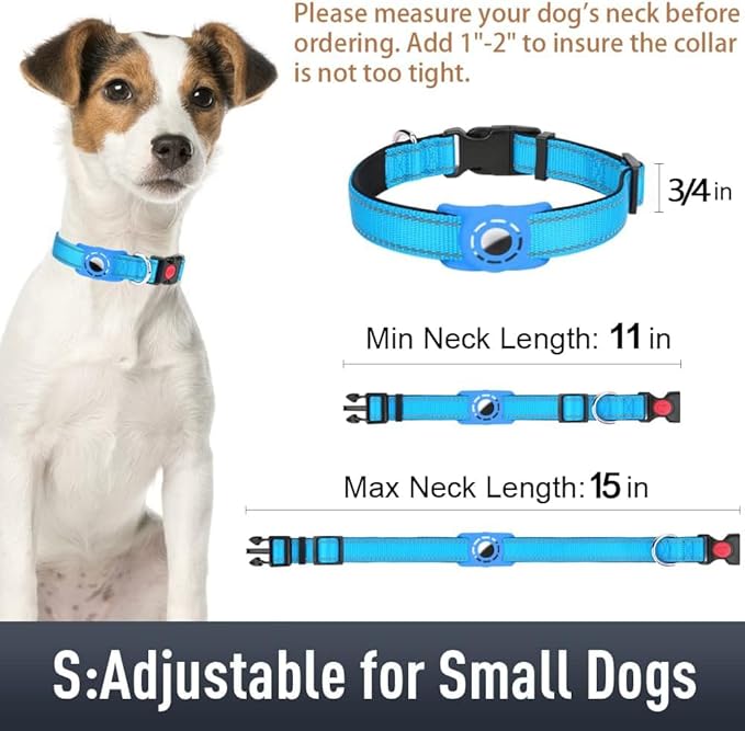 Airtag Dog Collar with AirTag Holder for Small Dogs, Reflective, Soft Padded & Safety Locking Buckle, Nylon Pet Collars Adjustable for All Breeds, SkyBlue,S