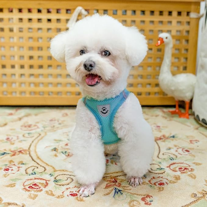 PUPTECK Adjustable Dog Harness Collar and Leash Set Step in No Pull Pet Harness for Small Medium Dogs Puppy and Cats Outdoor Walking Running, Soft Mesh Padded Reflective Vest Harnesses, Turquoise S