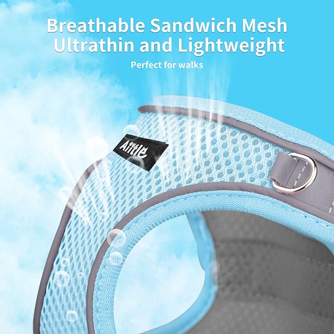 AIITLE Dog Harness, Spring No-Pull Cat Harness with a Leash, Adjustable Reflective Dog Vest, Cat Harness Escape Proof, Outdoor Walking, Camping for Extra Small Dogs and House Cats Blue XXXS