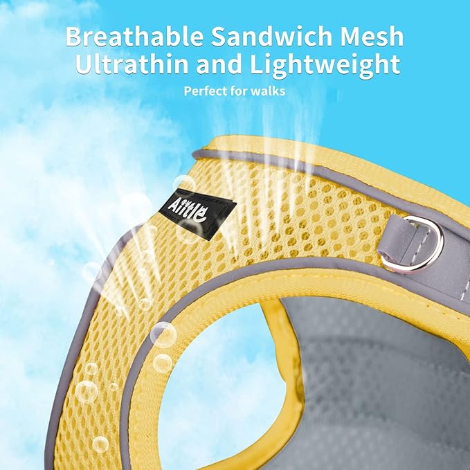 AIITLE Dog Harness, Spring No-Pull Cat Harness with a Leash, Adjustable Reflective Dog Vest, Cat Harness Escape Proof, Outdoor Walking, Camping for Extra Small Dogs and House Cats Yellow XXXS