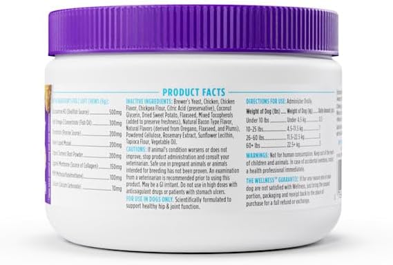 Wellness Grilled Chicken Flavored Soft Chews Hip & Joint Health Supplements for Dogs, 45 Count