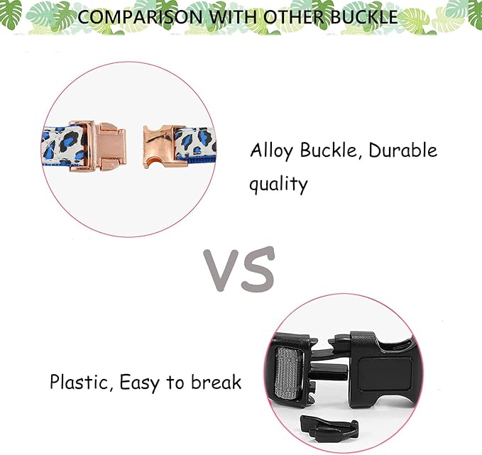 Metal Buckle Dog Collar, Durable Adjustable Dog Collar Soft for Small Medium Large Dogs (S(10-14in), Blue Leopard)