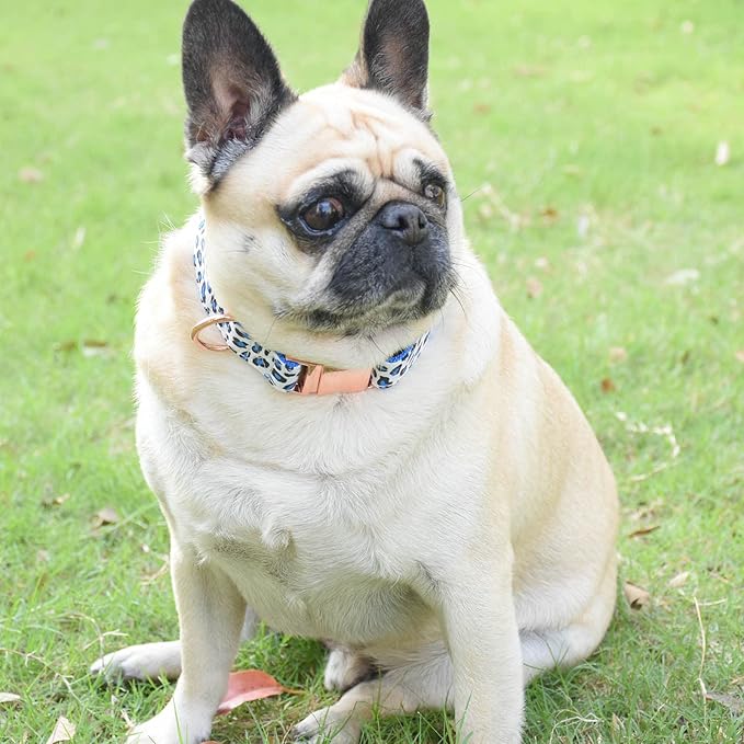 Metal Buckle Dog Collar, Durable Adjustable Dog Collar Soft for Small Medium Large Dogs (L(15-23in), Blue Leopard)