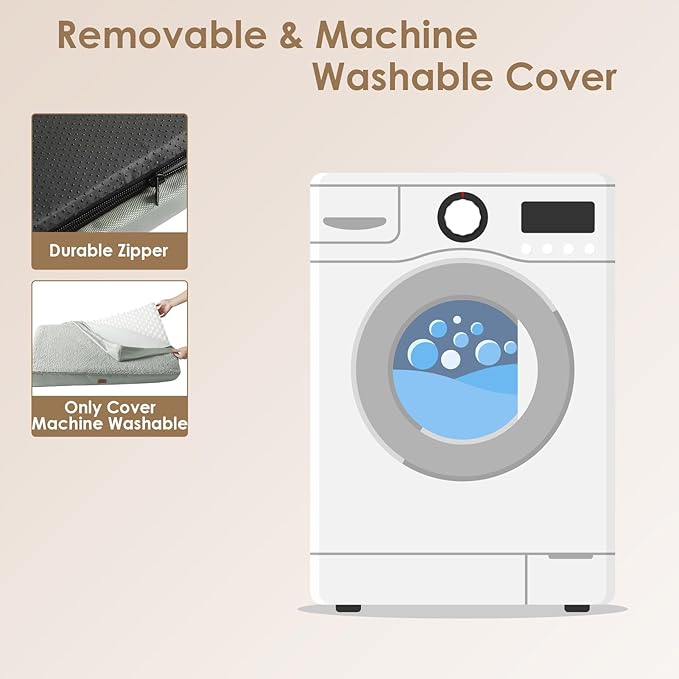 - CARE INSTRUCTIONS: Zippered removable cover is machine washable. Tumble dry on low heat. DO NOT BLEACH. DO NOT IRON. Please note that the inner foam is not washable. After receiving it, leave it for 24-48h for rebound.