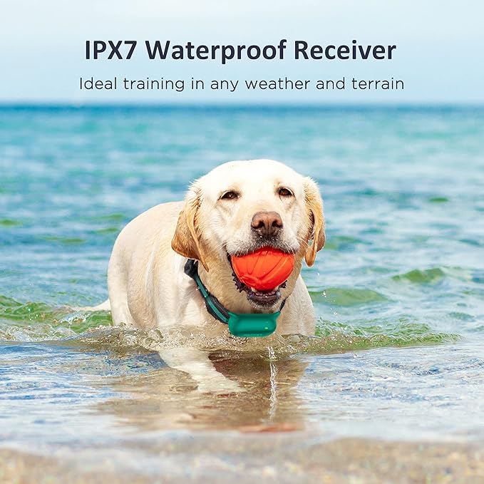 - IPX7 Waterproof Technology: If your dog likes to play with water, Don't worry, The IPX7 waterproof collar stays in a water depth of 3.2 Ft for half an hour, and its performance is not affected. So your dog can enjoy chasing toys around a pool, or playing in the rain freely