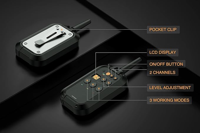 - 2 channels and 3 training modes. Designed for professional trainers to train stubborn dogs, supporting simultaneous control of 2 dogs.