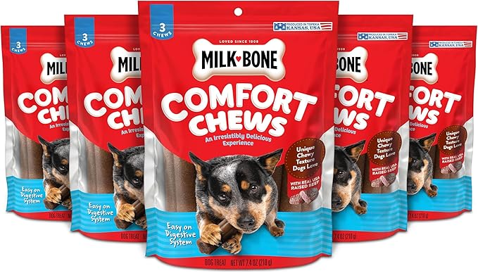 Milk-Bone Comfort Chews, Rawhide Free Dog Treats with Unique Chewy Texture and Real Beef, 3 Chews (Pack of 5), Easy on Digestive System