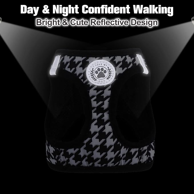 BEAUTYZOO Small Dog Harness and Leash Set,Step in No Choke No Pull Soft Mesh Dog Harnesses Reflective for Extra Small Medium Puppy Dogs and Cats, Plaid Dog Vest Harness for XS S Pets, Black XS