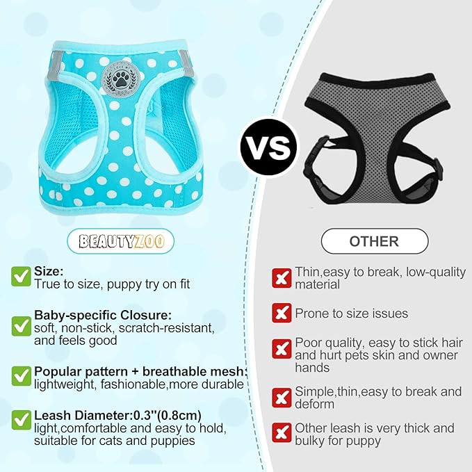 BEAUTYZOO Step in Dog Harness and Leash Set, Polka Dot Pattern Reflective Dog Harness No Pull No Choke Puppy Harness for XXS XS S Dogs Cats, Soft Padded Mesh Vest Harnesses for Girl and Boy Pets