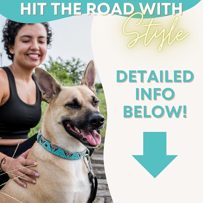 Western Dog Collar – Leather Dog Collar Embroidered Design for Small Medium Large Dogs & Puppy Pets - Aztec & Southwest for Boy and Girl Female & Male Dogs - Collar Para Perros (Large, Teal)