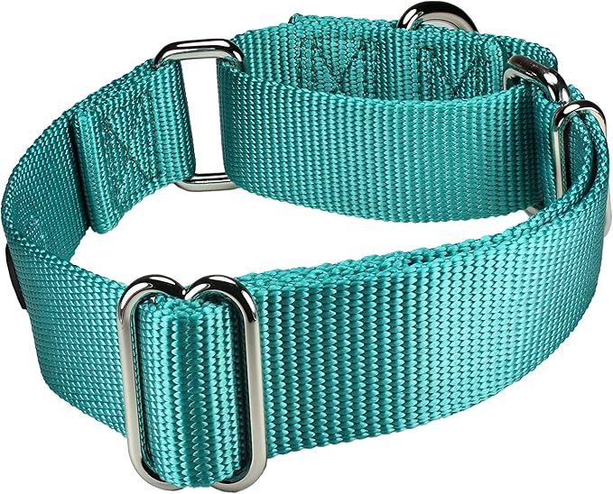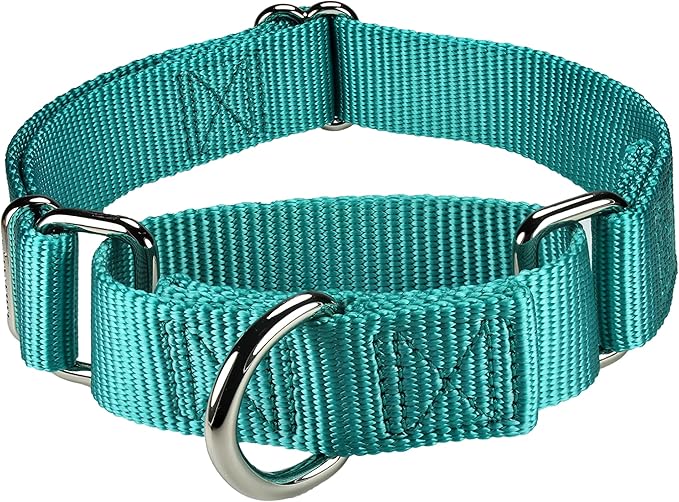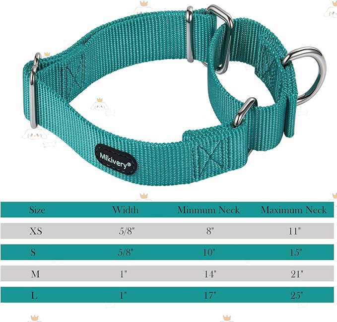 Mikivery Martingale Dog Collar Nylon Adjustable and Safety Training Colourful Comfortable Metal Buckle Pet Collars for Small Medium and Large Dogs(Teal,L)