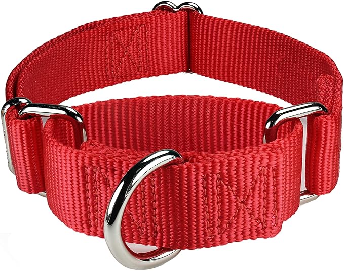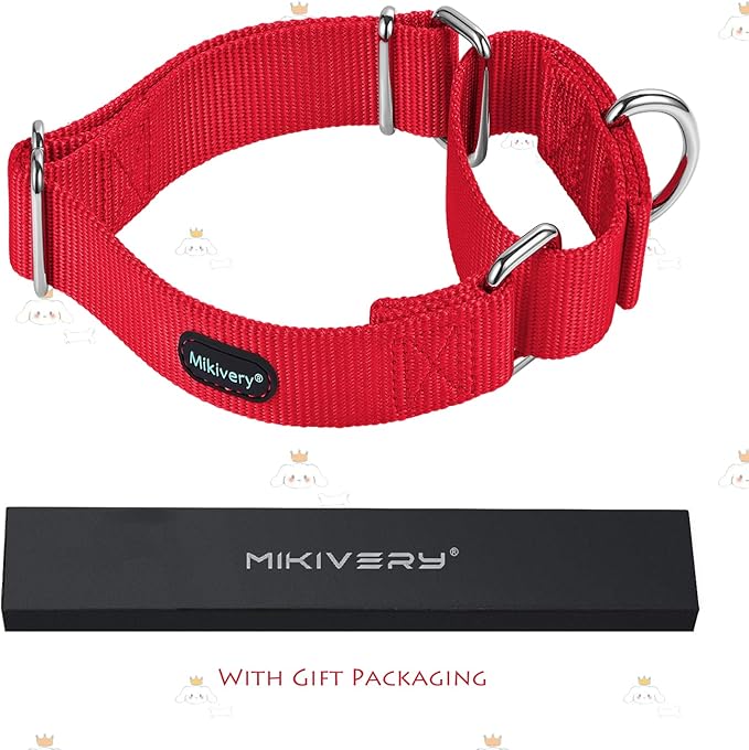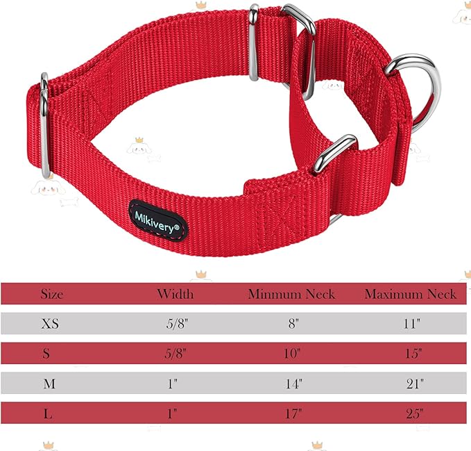 Mikivery Martingale Dog Collar Nylon Adjustable and Safety Training Colourful Comfortable Metal Buckle Pet Collars for Small Medium and Large Dogs(Red,M)