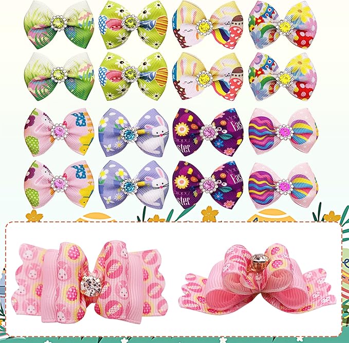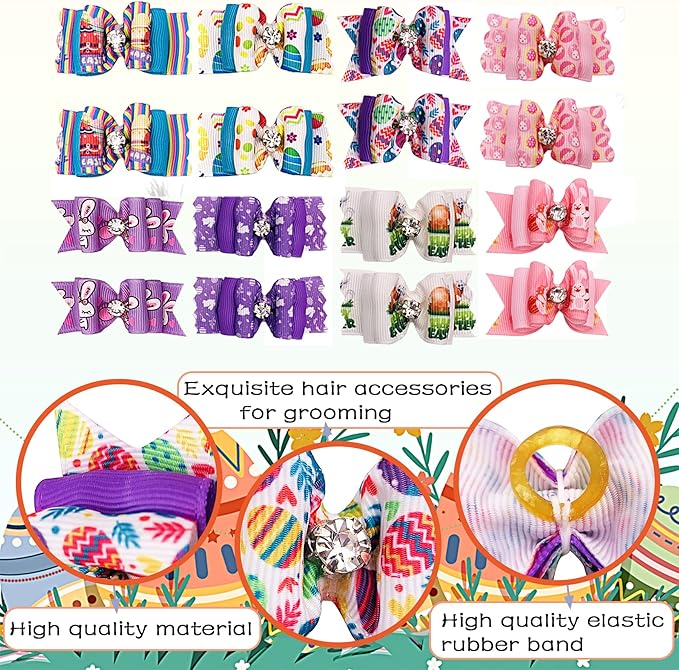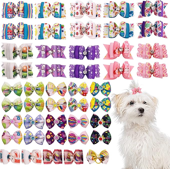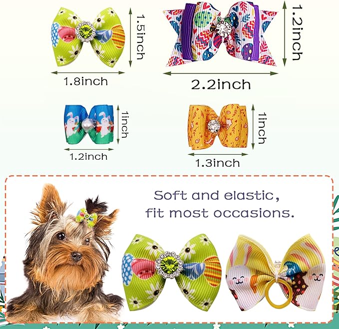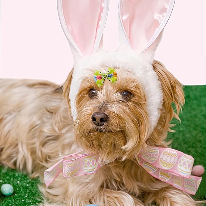 PET SHOW 20pcs Easter Small Dog Hair Bows with Rubber Bands for Medium Dogs Bunny Rabbits Puppies Cats Kittens Rabbits Yorkie Topknot Grooming Costumes Hair Accessories