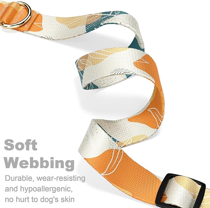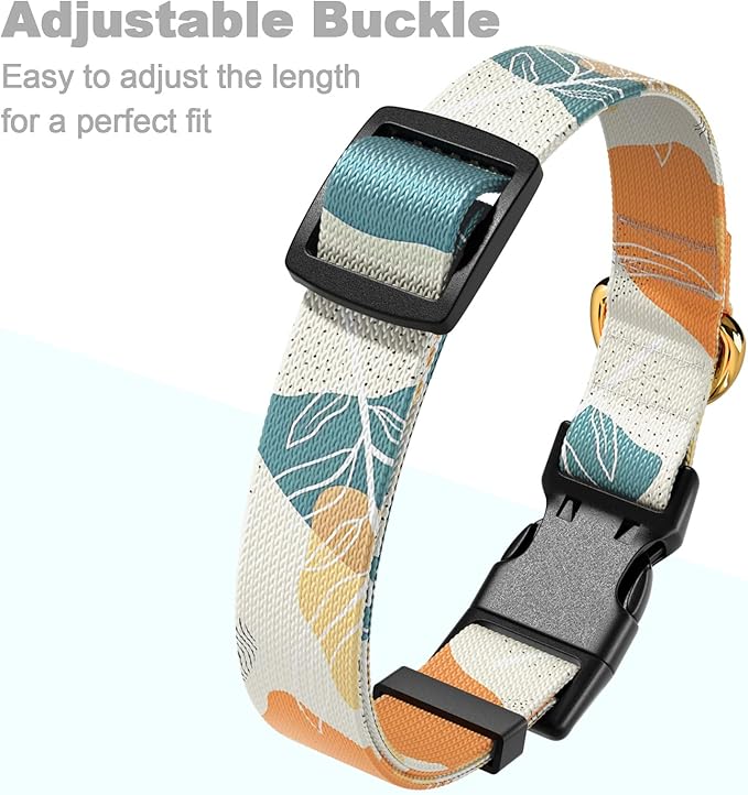 Rnivvi Dog Collar, Personalized Adjustable Dog Collars for Medium Dogs, Cute Boho Puppy Collar for Boy and Girl Dogs, Soft Pet Collar with Quick Release Buckle for Walking Running, Abstract Leaves