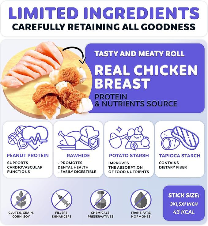 - 𦷠SUPPORTS DENTAL HEALTH: Each chew of our Chicken Jerky Knotted Bones is designed to support your dog's dental health. Not only are these treats tasty, but they also help clean your pet's teeth as they chew