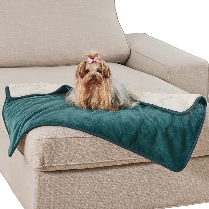 Bedsure Cat Blanket for Indoor Cats - Waterproof Calming Cat Blankets for Kitten, Sherpa Fleece Pet Blanket, Soft Plush Reversible Throw Furniture Protector, 35"x25", Green