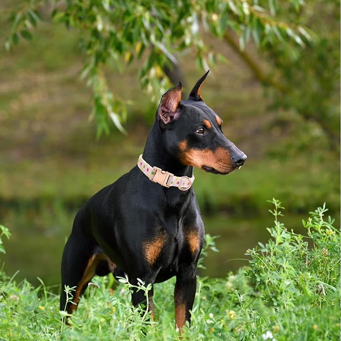 Metal Buckle Dog Collar, Durable Adjustable Dog Collar Soft for Small Medium Large Dogs (Pink Point, L(15-23in)