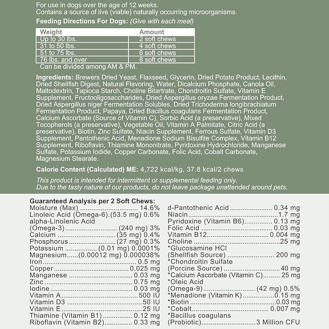 - Glucosamine and chondroitin help boost hip and joint health, as well as muscles, cartilage, and bones. Great for younger and senior pets