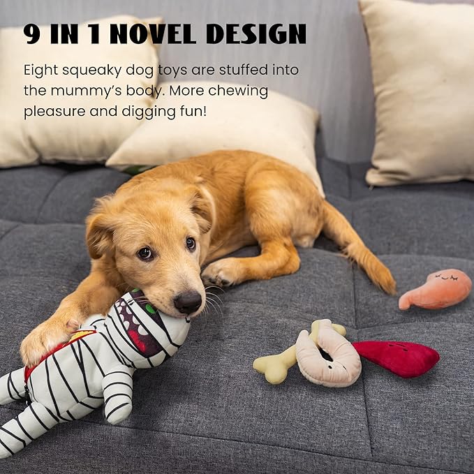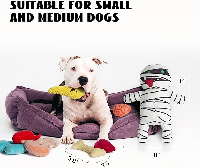 - Creative Design: Our designers have boldly filled the mummy body with 8 small squeaky organs! These organs include a heart, lungs, stomach, and others, each with cute facial expressions