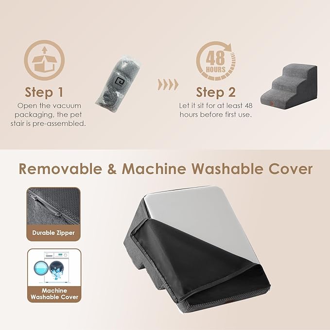 - SPECIFIC AND STEADY DESIGN - 33D density of pure foam make this stair more steady when your pets walk on. The dog bed stairs can provide strong support for pets in the walking process. Low angle slope design can better protect your pet's joints.