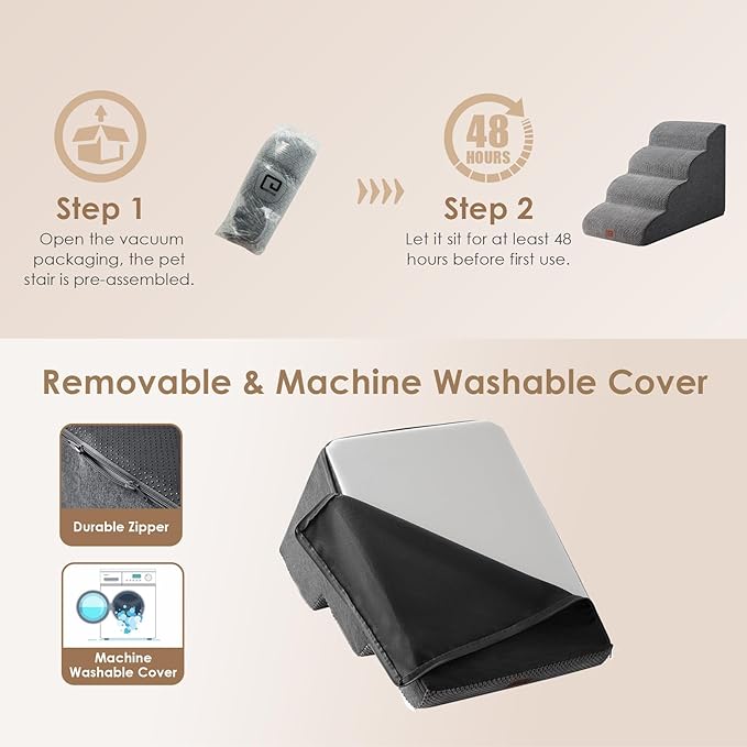 - SPECIFIC AND STEADY DESIGN - 33D density of pure foam make this stair more steady when your pets walk on. The dog bed stairs can provide strong support for pets in the walking process. Low angle slope design can better protect your pet's joints.