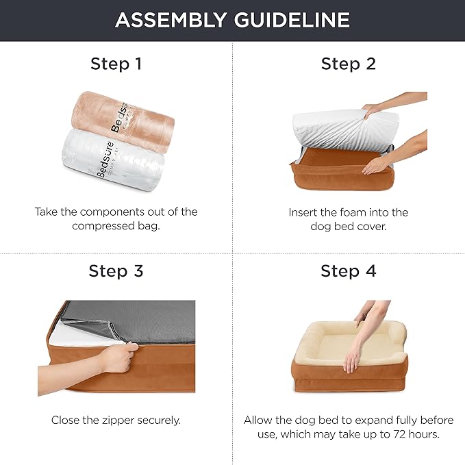 Bedsure Orthopedic Dog Beds Large Sized Dog - Washable Large Dogs Bed Waterproof, Big Comfort Pet Couch with Washable Removable Cover, Supportive Foam Pets Sofa with Nonskid Bottom, Caramel