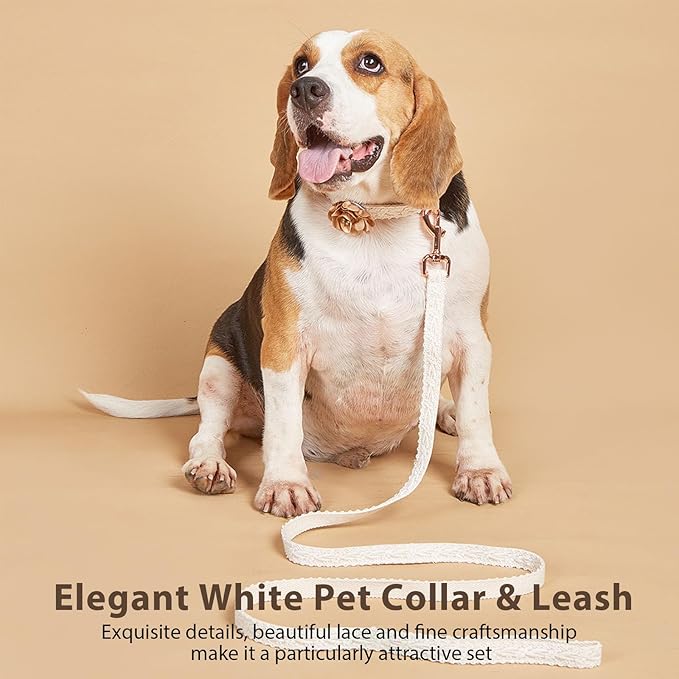 - Dog gift ❤ Elegant and charming flowers make your pet more charming, high-quality and exquisite details, beautiful lace, and fine craftsmanship make it a particularly attractive suit. Hardware is made of luxury metal and is not easy to oxidize. The rose-gold clasp makes the whole set of products unique in shape, and the durable and rust-free zinc alloy material can withstand greater tension. Everyone will ask where you can buy this lovely lace dog collar.