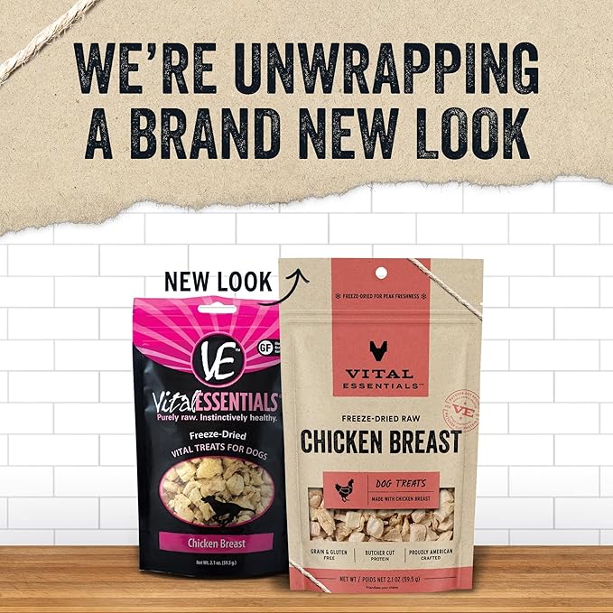 - FREEZE-DRIED RAW CHICKEN BREAST DOG TREAT: Vital Essentials Freeze Dried Dog Treats pack more protein than industry standard into every bite to deliver the peak vitality your dog deserves. Our natural freeze-dried raw dog treats are made from responsibly sourced, premium butcher cut chicken breast.