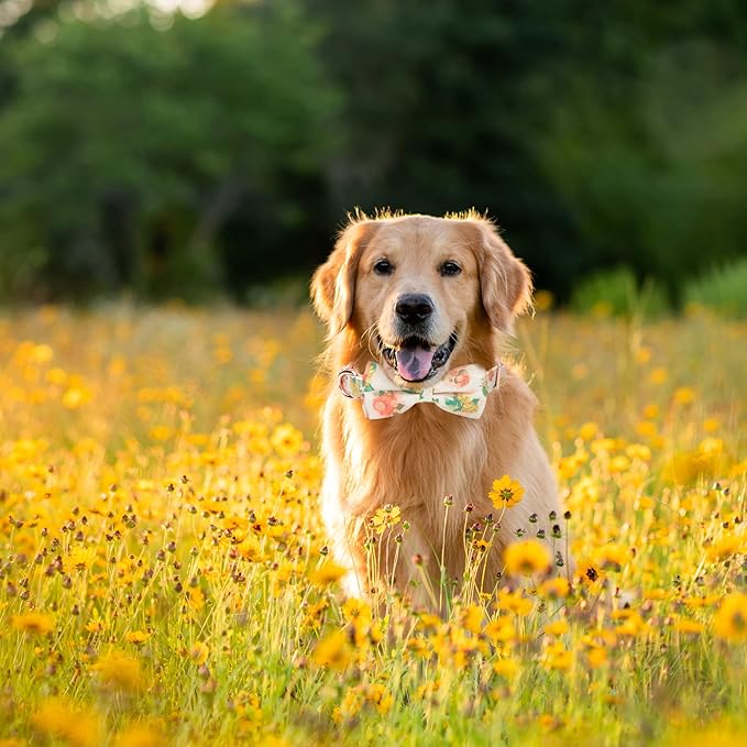 - Removable Dog Collar With Bow Tie: The bow ties on those girl floral puppy collars are removable and can be attached to any collar without any alterations to the collar itself. Super easy to take on or take off. You can remove it from the collar when you need wash it.