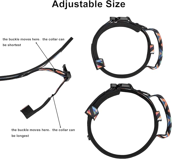 - 【Double Security】Buckle training dog collar adopt integrated collar,magic sticker and quick release metal clasp dual design.Adjustable dog collar easy to put on and take off,the metal clasp can be released quickly in case of emergency.