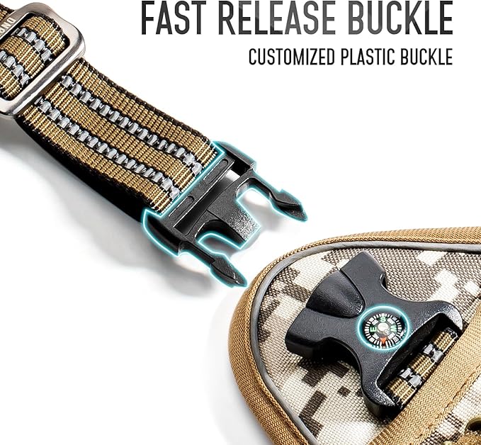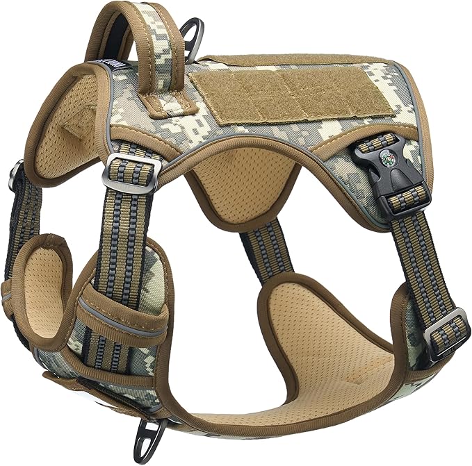 Tactical Dog Harness for Medium Large Dogs, Heavy Duty Dog Harness with ID Card, Reflective Hiking Harness for Training Easy Control Dog Vest with Handle Desert Camo