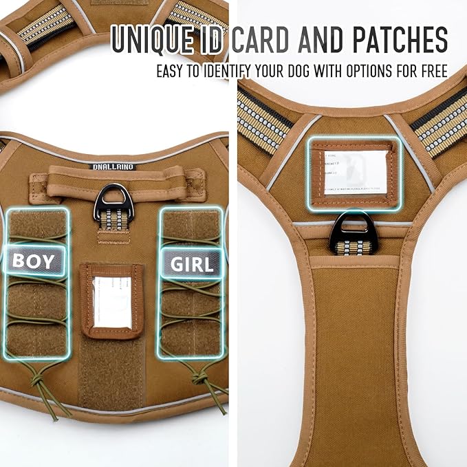 - Effortless No-Pull Design: With reinforced rings, our brown tactical harness provides stability for leash attachment, especially for escape-prone dogs. The front clip aids in no-pull training, while the back clip suits casual walks or jogs. Tackle daily training with confidence.