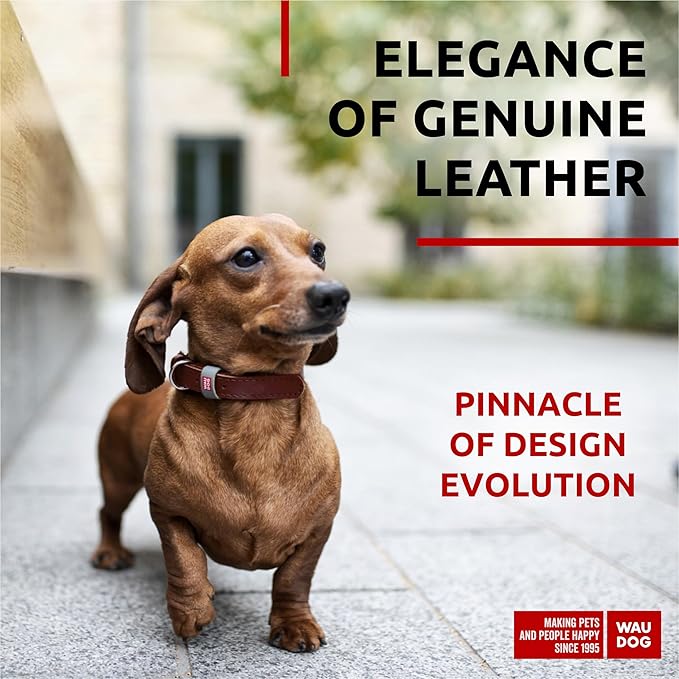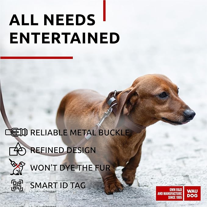 WAUDOG Long Lasting Leather Dog Collar for Large Dogs, Medium & Small Dogs - Adjustable Classic Puppy Collars for Large Breed Dogs - Boy & Girl Dog Collars with Durable Buckle, D-Ring & QR Dog Tag