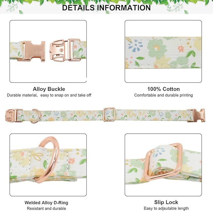 Metal Buckle Dog Collar, Durable Adjustable Dog Collar Soft for Small Medium Large Dogs (Green Flowers, L(15-23in)