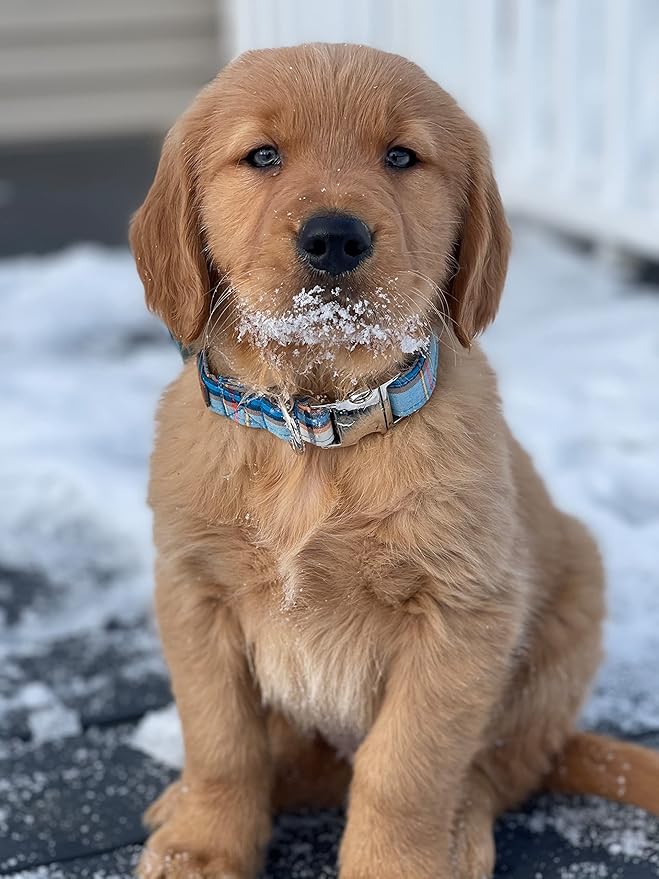 Lionet Paws Boy Dog Collar, Comfortable Adjustable Cute Blue Plaid Collar with Metal Buckle for Male Dogs, Large, Neck 16-24 inches