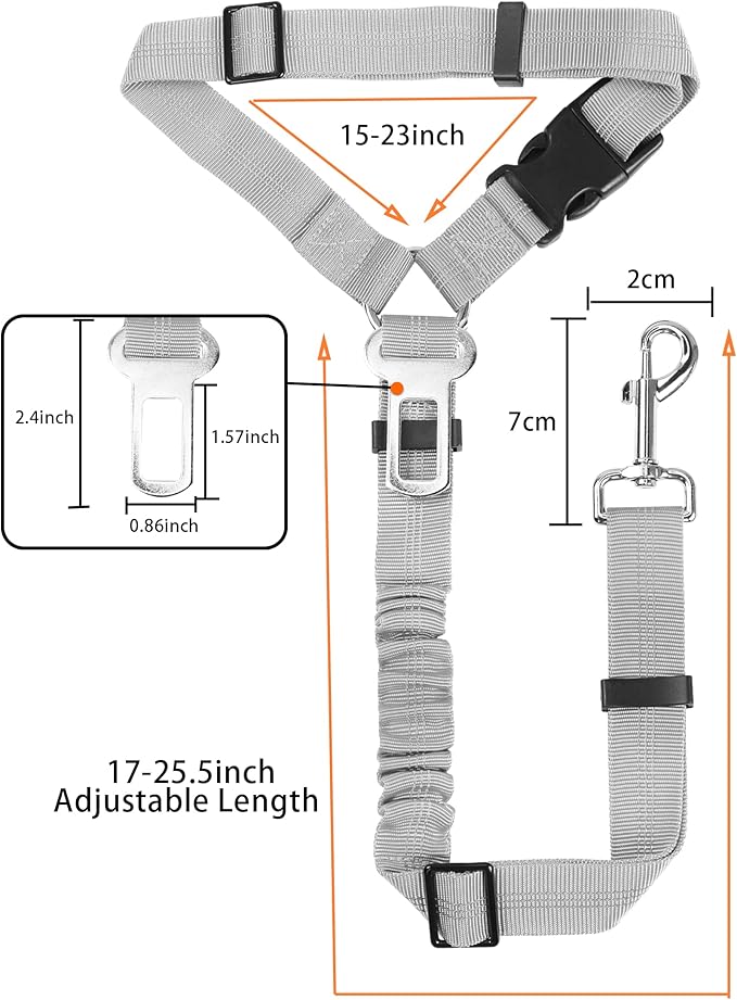 - 【3-In-1 Headrest Restraint With Buckle Design】Upgrade 2-IN-1 Dog Seatbelt is designed with headrest restraint and clip. The tab on the car seat belt clip is 0.8' in width, which is compatible with most vehicles. It can also be used in all models of Vehicle which has headrest. Don't worry about unsuitable for your car any more.