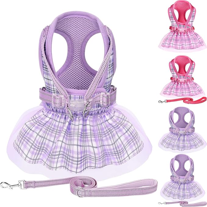 - ✿ Cute Dog Harness Dress ✿ : 1 package contains 1 pieces of female dog dress and 1 pieces dog leash Exquisite Plaid pattern. Casual stylish, perfect for parties and holidays occasions, fit for everyday wear and night pajamas clothes, also nice props for taking pet picture and a good choose of dog gifts for dog's birthday.